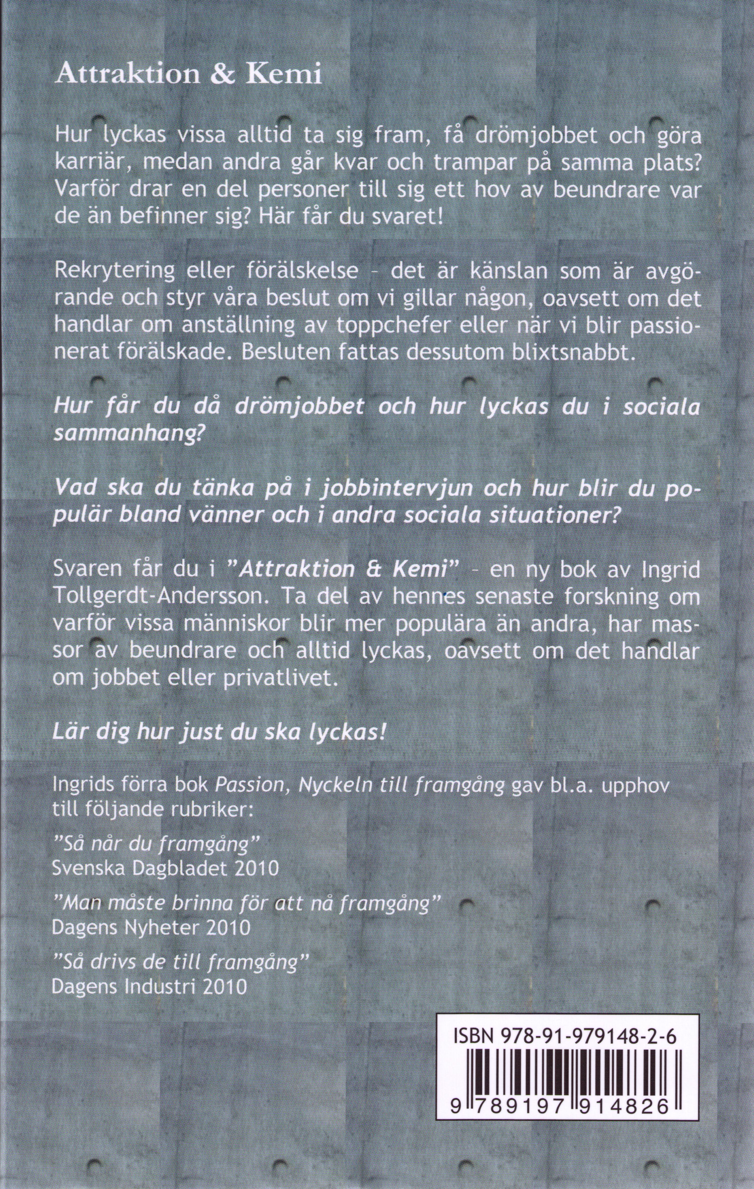 I boken Attraktion & Kemi ser jag närmare på både attraktion mera allmän och på vad som avgör i en rekrytering. Boken fins i bokhandeln, på Adlibris och på Bokus.