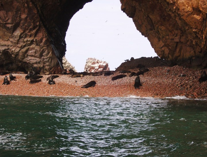 Nog verkade sjölejonen i denna nationalpark i södra Peru trivas mycket bra tillsammans! De utstrålande en sådan harmoni!
