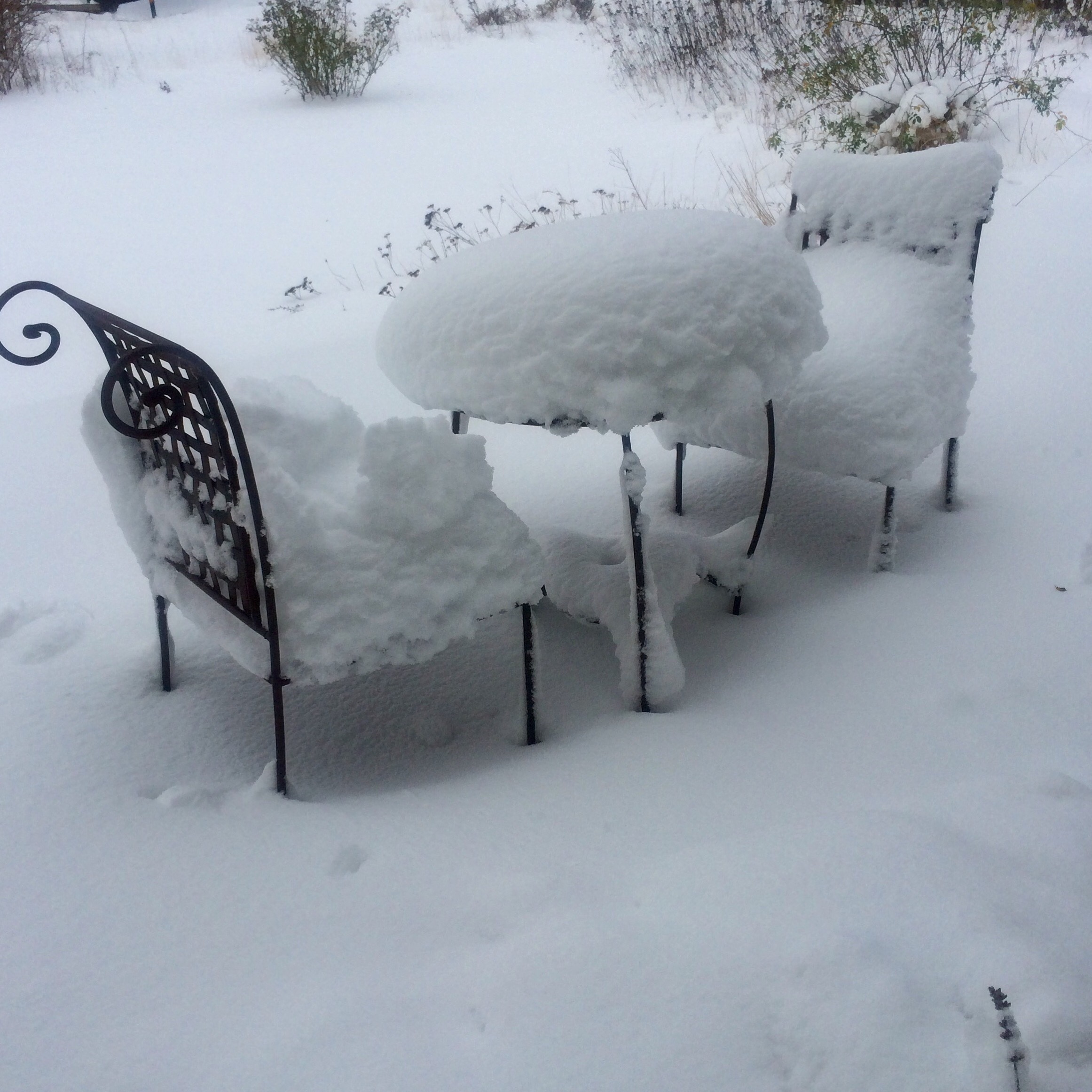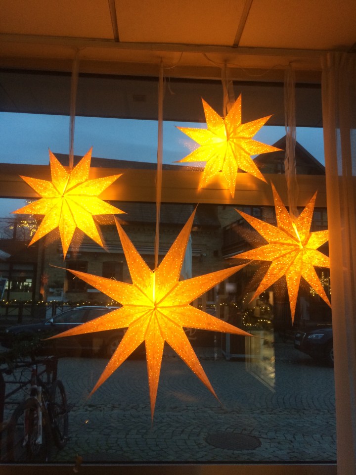 Snö och ljus utanför fönstret i morse!