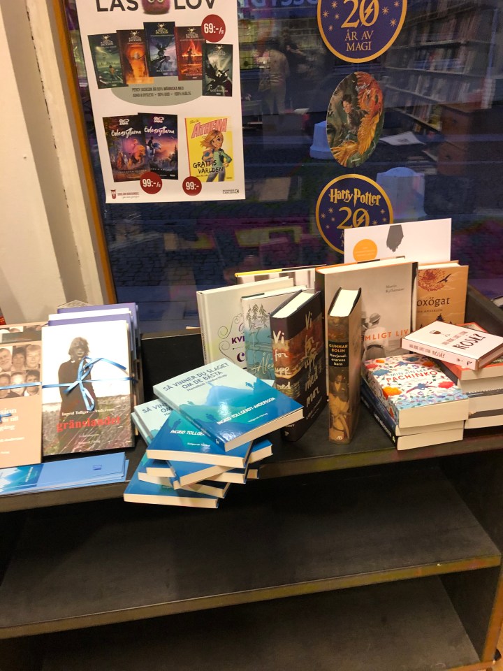 Så läser jag otroligt mycket – att läsa utvecklar och inspirerar och är en viktig grund för mig som författare. Älskar våra små fina boklådor som förser oss med bra litteratur och särskilt förtjust är jag i de boklådor som har lyckats klara sig utan att slukas av de stora jättarna,