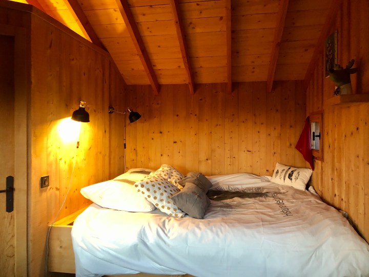 När vi nu på höstlovet är på besök hos vänner som har en underbar vingård i Menétru-le-Vignoble och vi får veta att i byn ligger ett förtjusande Maison d’ Hôtes som har några mysiga hotellrum OCH en cabane- en trädkoja så är valet självklart – trädkojan bokas.