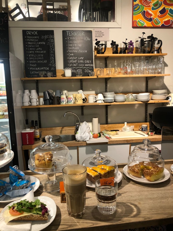 Miljön är ett paradis för alla som tycker om att läsa – underbara böcker överallt – men också ett mysigt kafé där man kan få kaffe så klart men även tilltugg av olika slag.