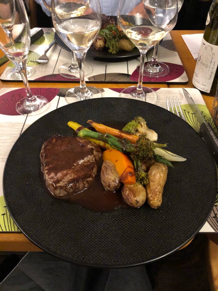 På kvällen återvänder vi med trevligt sällskap till Baume-les-Messieurs för att äta en utsökt middag på förtjusande Grand Jardin. Underbar mat – livfull med härlig atmosfär- ett fynd – så är der också fullsatt!