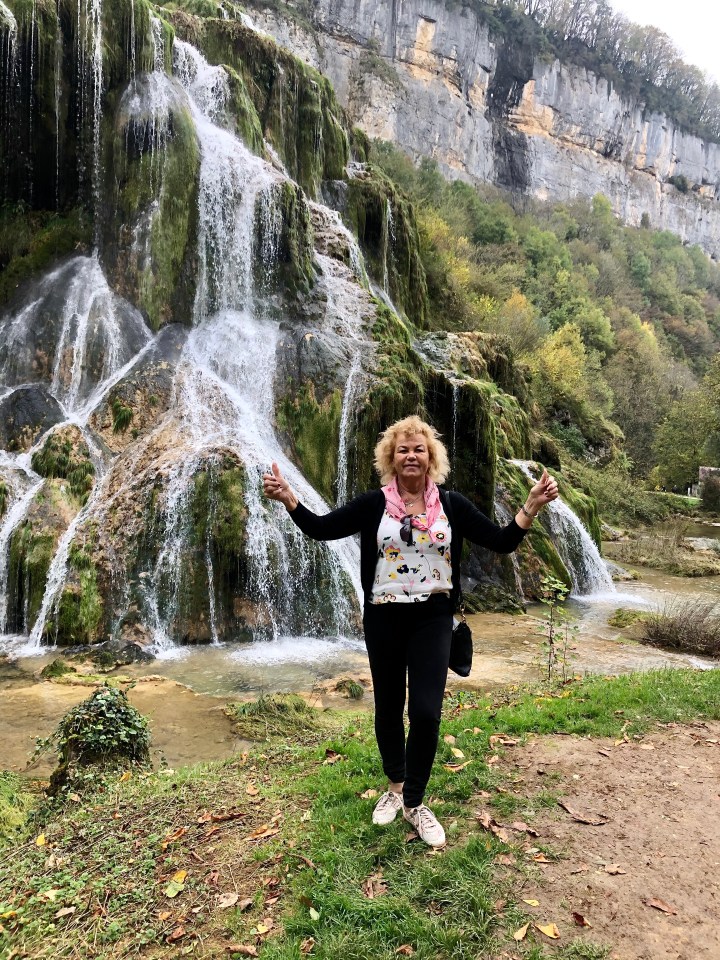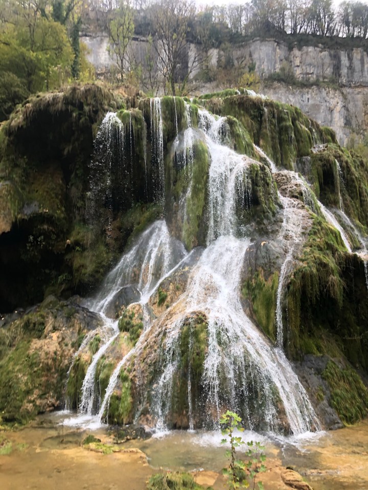 Vi dröjer oss kvar i Baume-les-Messieurs- denna förtjusande by. Vi får höra att ett par kilometer från bykärnan ska det finnas mäktiga vattenfall och en spännande labyrint av djupa grottor och det vill vi inte missa. Vädret är fortsatt varmt så vi bestämmer oss för att promenera till denna sevärdhet.