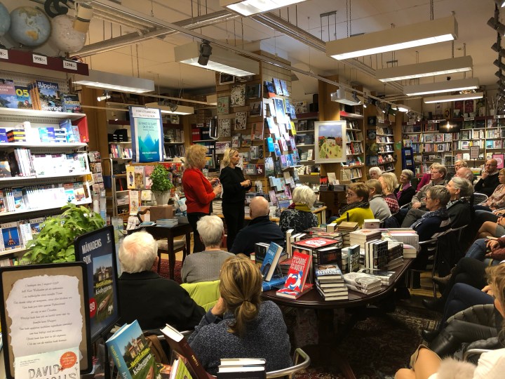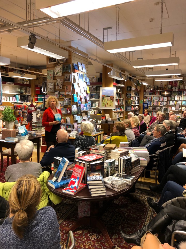 Efteråt mysigt mingel och jag sålde slut på varenda bok – som tur var hade vi några extra böcker i bilen. Jag är så glad över våra fina lokala bokhandlar- och alla ni som tycker som jag – tänk på att köpa böckerna där – om vi vill ha kvar dessa smultronställen- det vill jag – och jag är ett bokhandlar fan!