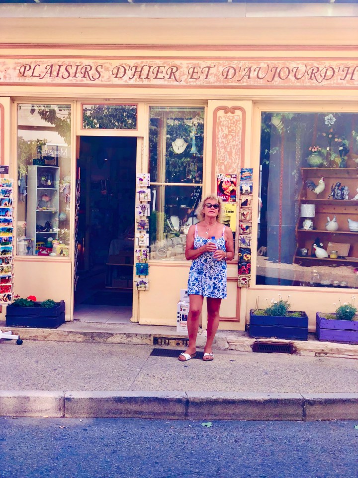 Lite souvenirer och annat innan vi tar en kaffe på ett av många trevliga kaféer. Dags att köra vidare och lavendelfälten utanför byn är magiska!