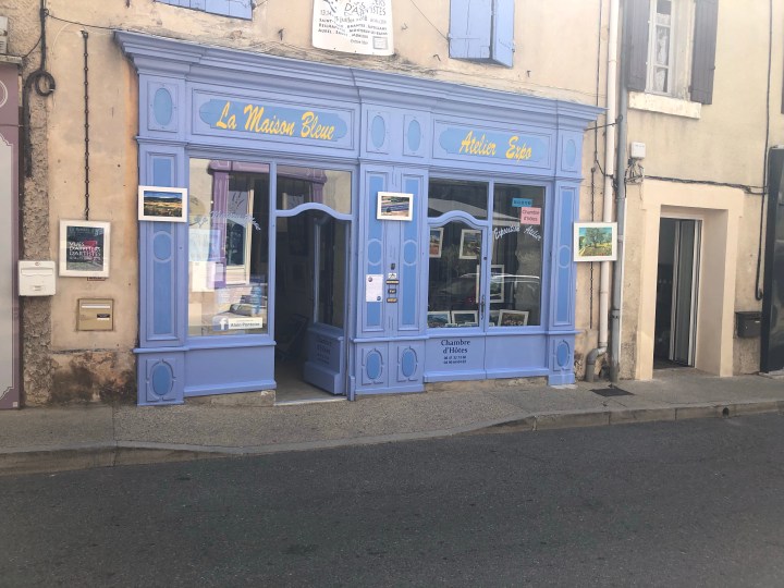 Älskar den lavendelblå färgen som man möter så ofta i Provence och just här finns en fin konst ateljé. Hela färgpaletten är förtjusande.