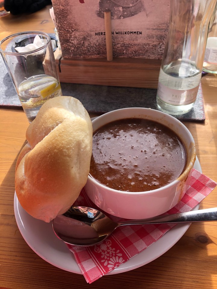 Njuter av klassisk skidlunch på mysiga Froneben.