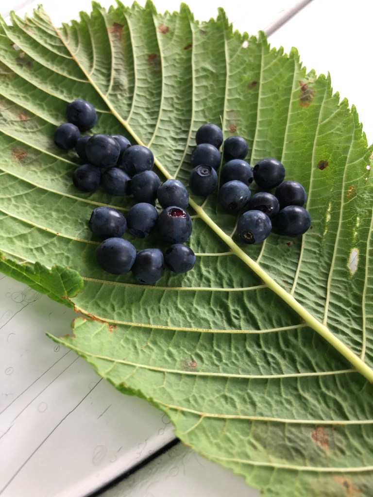Man klättrar upp för små stigar omgivna av blåbärsris som dignar av läckra blåbär när vi är där!