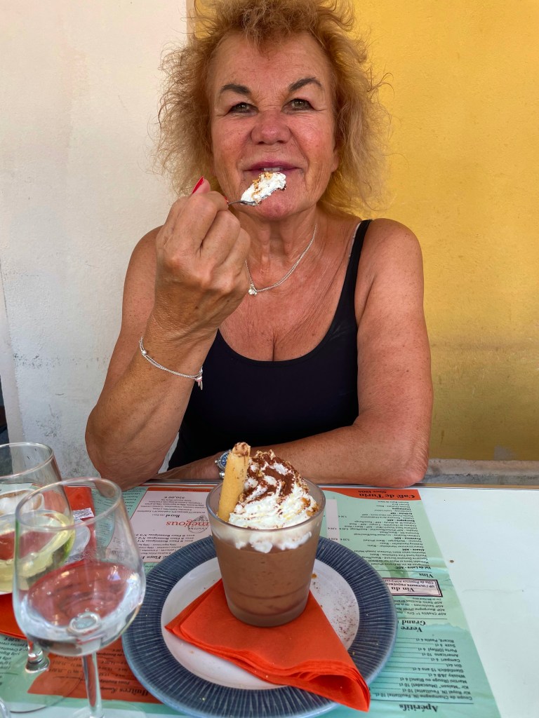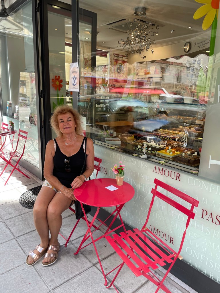 Efter frukost blir det kaffe på vår favoritstrand- Ruhl Plage – trevligt återseende och ett varmt välkomnande av Madame.