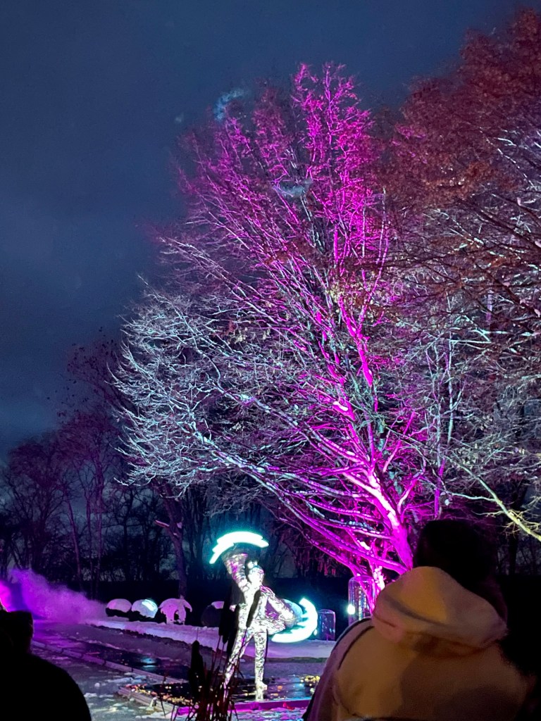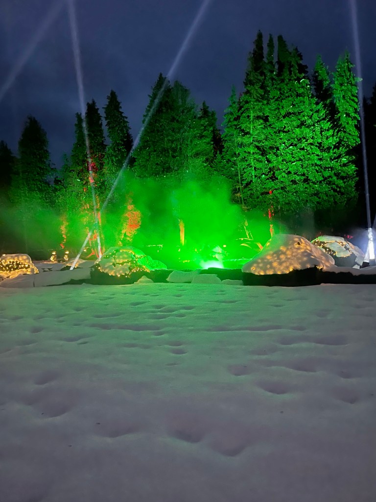 Att stå i den upplysta trädgården-se ljusspelet på himlavalvet och höra Stilla Natt – det skapar julstämning.