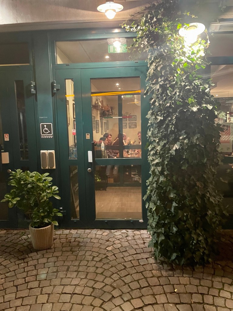 Stämningen för definitivt ens tankar till Italien- ofta hör man italienska talas bland gästerna – sällskap som dröjer sig kvar länge -pratar -skrattar och har det så bra. Alla tas om hand av Anna och Emanuele, den trevliga personalen och på lunchen finns ofta Klas – Annas pappa på plats – ibland också Annas mamma – så verkligen italiensk familjekänsla!