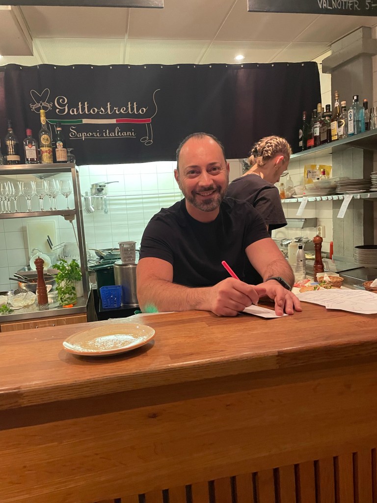 Ja det känns som att gå in i den bästa italienska trattoria i Rom- Bologna eller någon annanstans i Italien- så kommer också Emanuele från Rom. Det är han som äger denna pärla tillsammans med sin Anna – Gatto Strettos superduktiga kock!