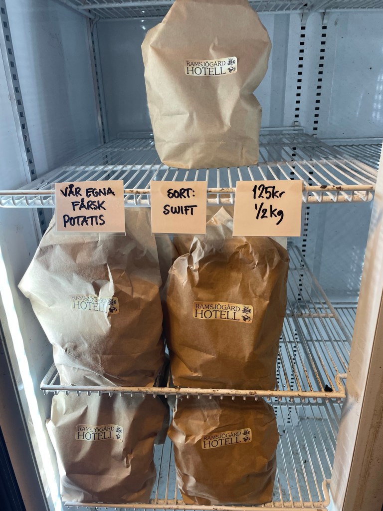 Sätter mig på cykeln- trampar en knapp kilometer till första stopp – Ramsjögården- med nyupptagen färskpotatis – sparris – ramslök. Lokalt och närodlat – ser redan fram mot kvällens middag!