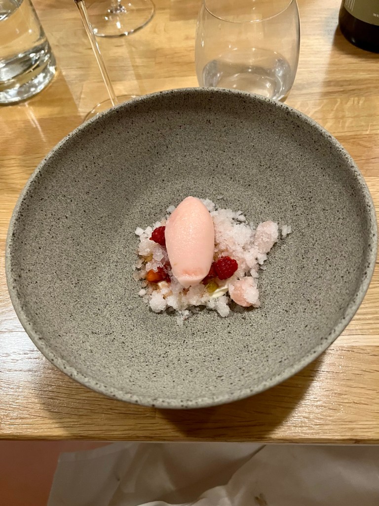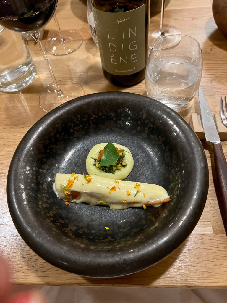 Efter tips från Atout France hade vi bokat bord på La Mutenerie en spännande restaurang där den unge Le Chef fått lysande omdömen. Sju rätters meny där varje rätt är en överraskning- och vilken mat – fantastisk! Bifogar foton av några rätter.