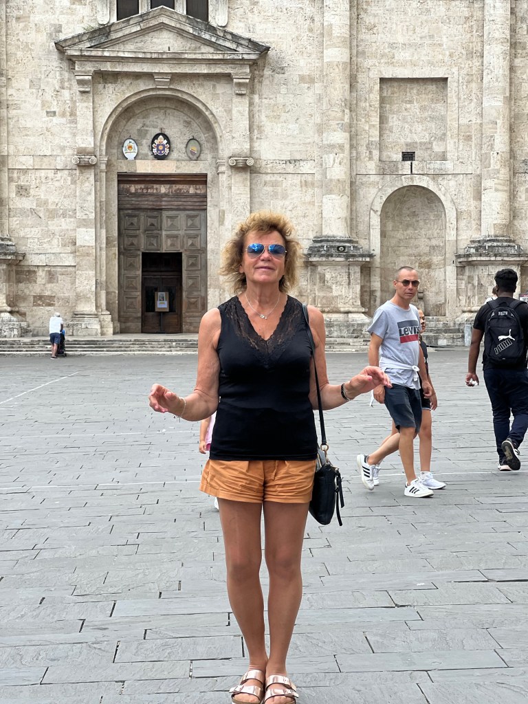 Nu är vi redo för katedralen- medeltida gator och underbart vackra torg. Stämningen är glad och förväntansfull- snart ska vi få veta varför.