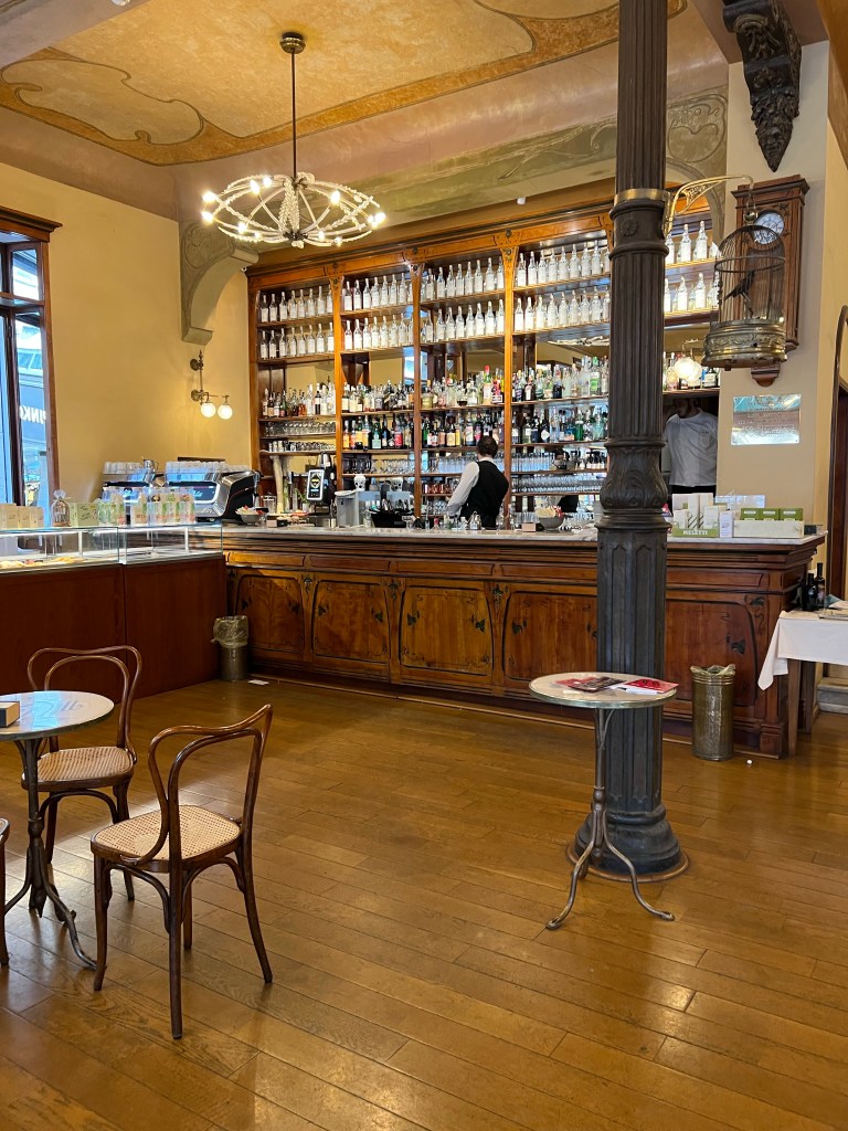 Vi känner oss nästan förflyttade till medeltid och renässans- inte alls fel där vi sitter på ännu ett litet kafé.