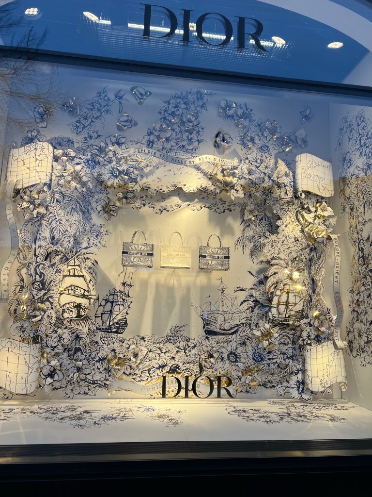 Så tar vi U- tåg till den mondäna delen av Berlin där KaDeWe – tronar som en lyxig krokan. Skyltningen är fantastiskt vacker och så gott som varje skyltfönster tillägnas Dior.