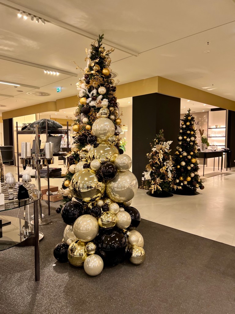 Vi går in och njuter av all prakt och tjusiga juldekorationer