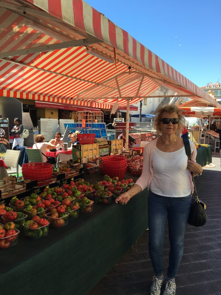 Köper gärna oliver, citroner, mandlar och annat på den trevliga marknaden och en kaffe på Pain & Cie är en återkommande tradition.
