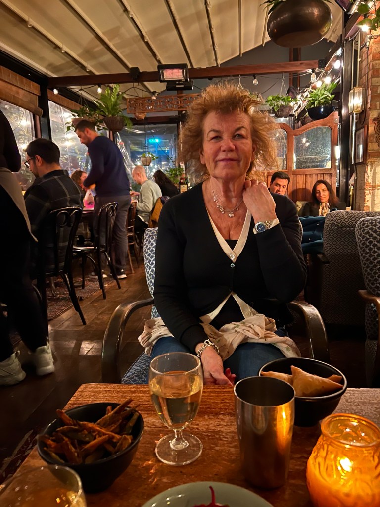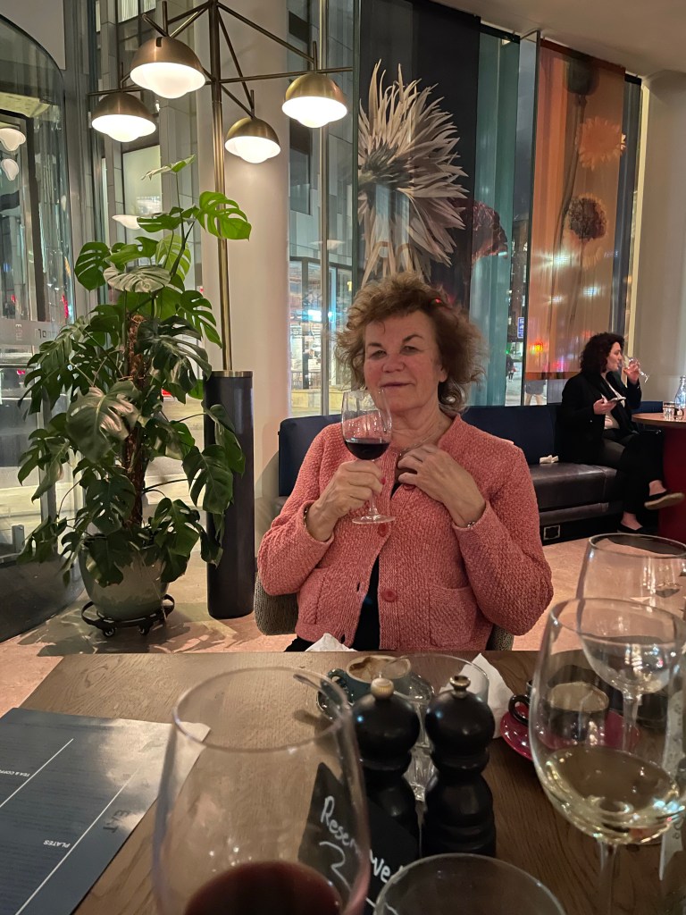 Bord måste bokas – kön ringlar lång – så sitter vi på en pub en bit därifrån när maken frågar – var det nio vi har bokat? Fram med mobilen- japp men så ser jag att det står breakfast 9 am. Vad göra? Vi går dit – låtsas som det regnar- men nog upptäcker de att det står just frukost- men mitt motto i livet är att allt löser sig och klart att vi lyckades få ett bra bord ändå!