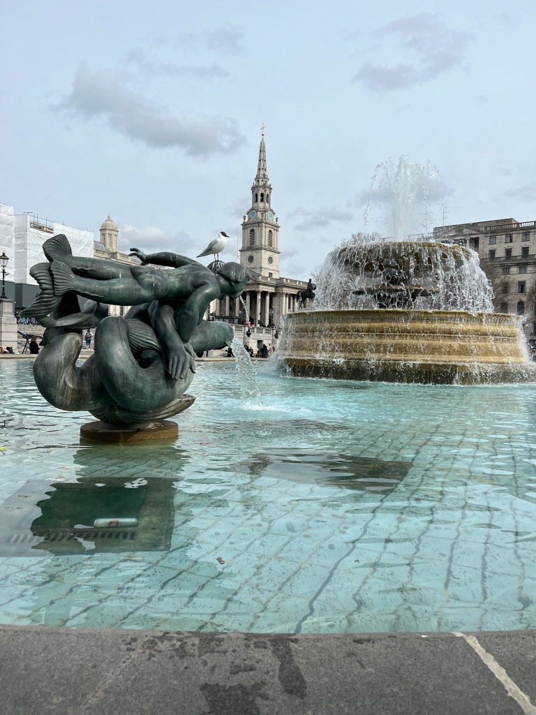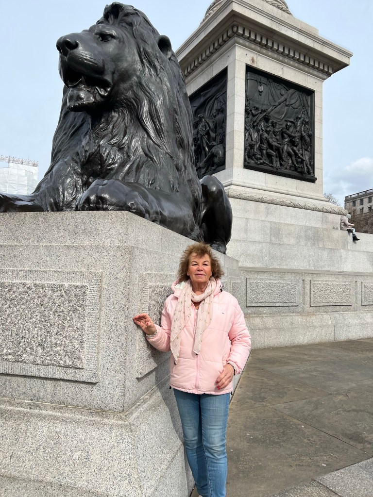 Uppfyllda och glada njuter vi av Trafalgar Square – Lord Nelson och allt annat som verkligen symboliserar London!