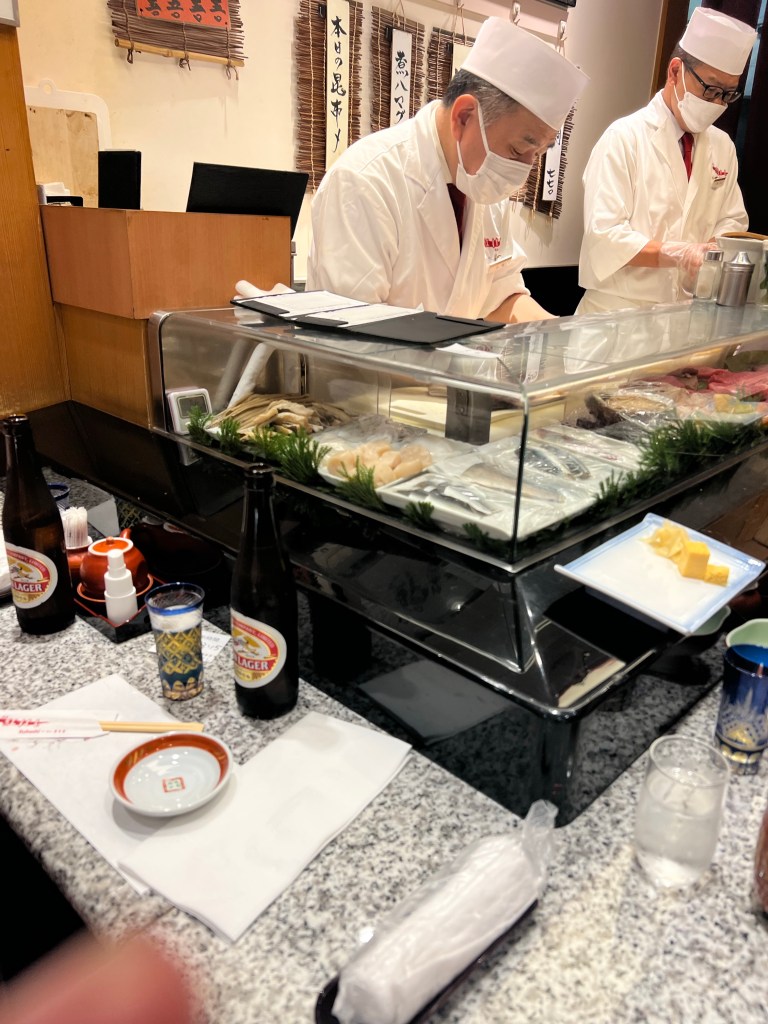Inne i ett liter hörn på matavdelningrn hittar vi en mysig liten sushi restaurang..Att se sushi kockarna in action är ett nöje.