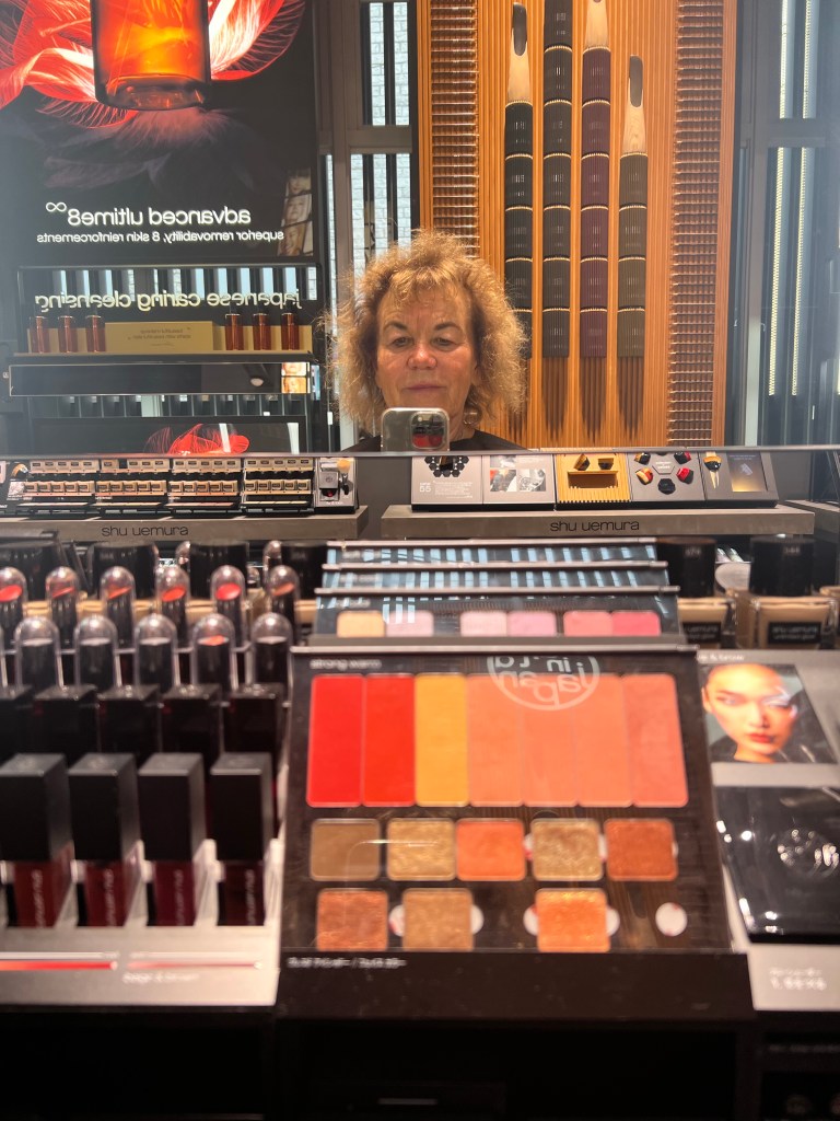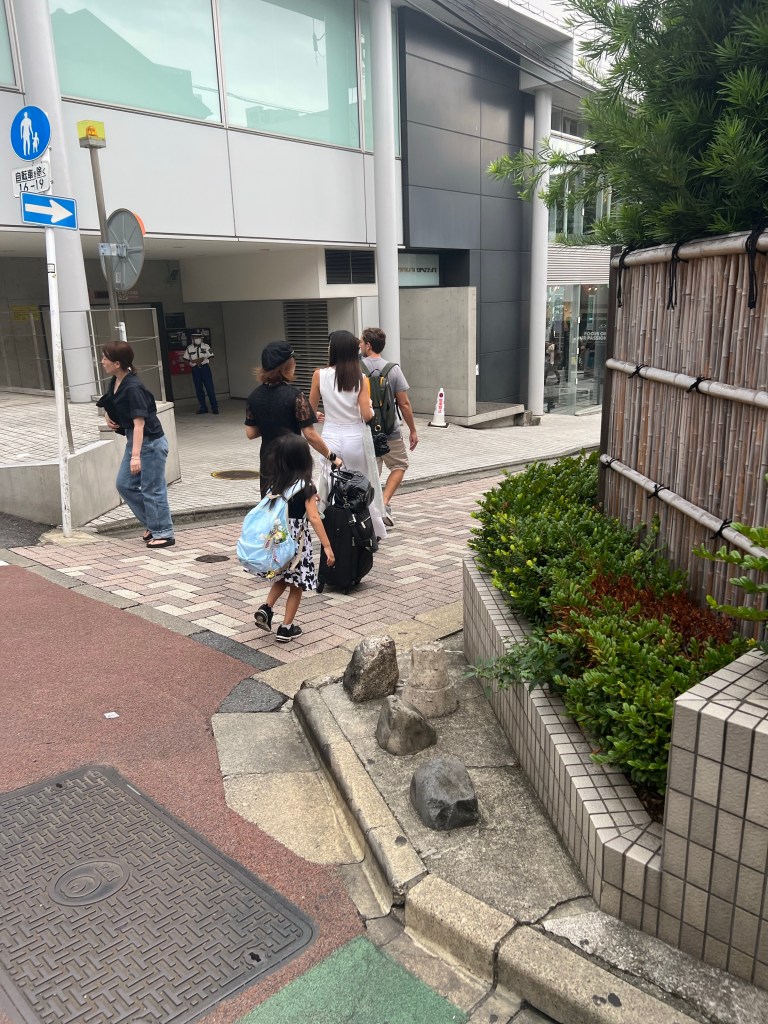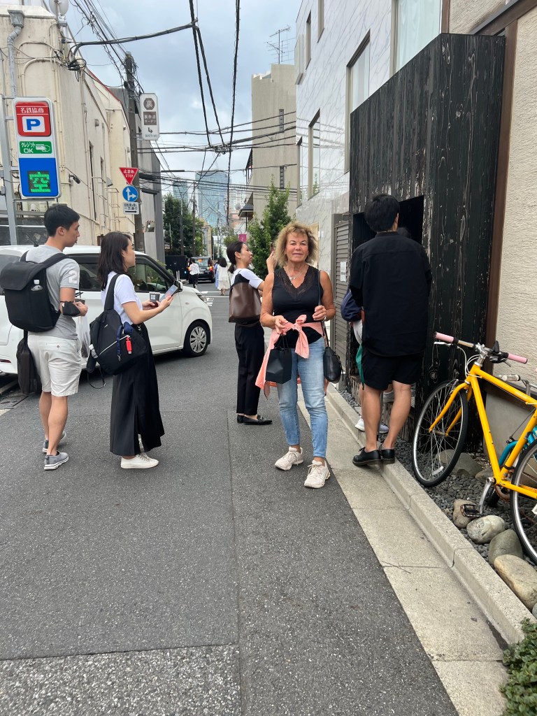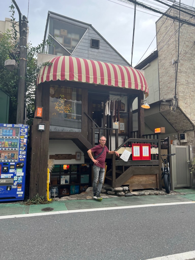Nu ska vi försöka ta oss till Shibuya och frågan är var vi hittar en buss som tar oss dit. Vi går tillbaka till sybutiken och den rara ägarinnan följer med oss till närmaste busshållplats- lämnar dörren till ateljén/ affären öppen och det är väldigt mycket Japan.