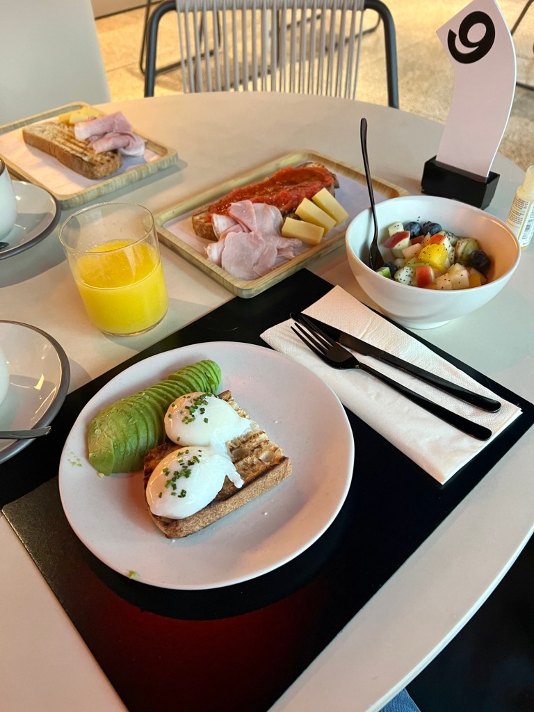 De senaste gångerna har vi bott på Hotell Casa Camper– centralt beläget i Mitte. Härlig lounge högst upp där det serveras snacks – smörgåsar – frukt -kaffe och te utan extra kostnad. Vin finns också att köpa – glas eller flaska. Det är mysigt att hänga där en stund efter en intensiv dag ute.