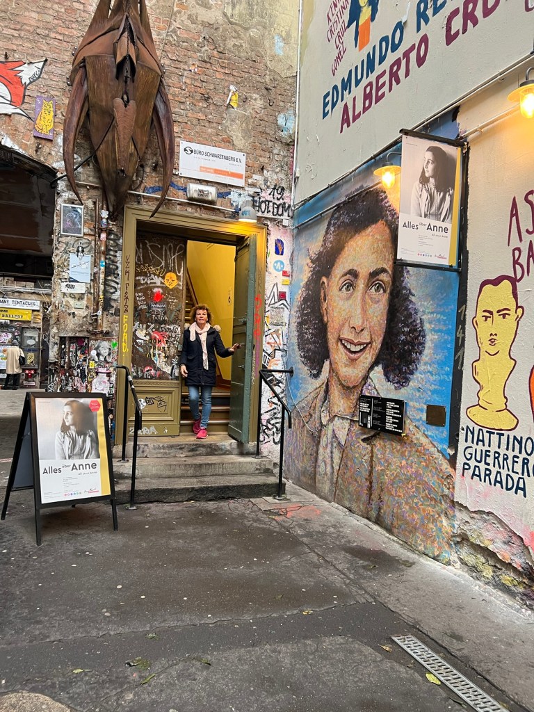 Vi missar heller aldrig Hackesche Höfe där varje gård har sin särskilda prägel. Biograf – teater – galleri och så gården med Anne Frank Center och Otto Weidt museerna. De berör och griper tag i en -vi befinner oss i de judiska kvarteren där så många deporterades under andra världskriget.