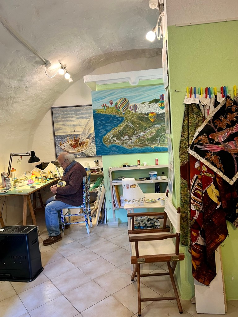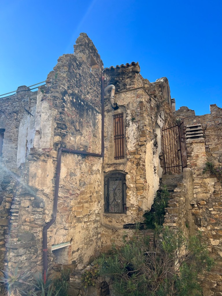 Bussana Vechia ligger osannolikt vackert- högt uppe och vi tar oss dit på slingriga vägar -så smala så vi undrar hur vi ska få upp vår hyggligt stora bil och önskar för stunden att vi hade en liten italiensk minibil – men upp kommer vi och lyckas hitta en parkeringsplats.