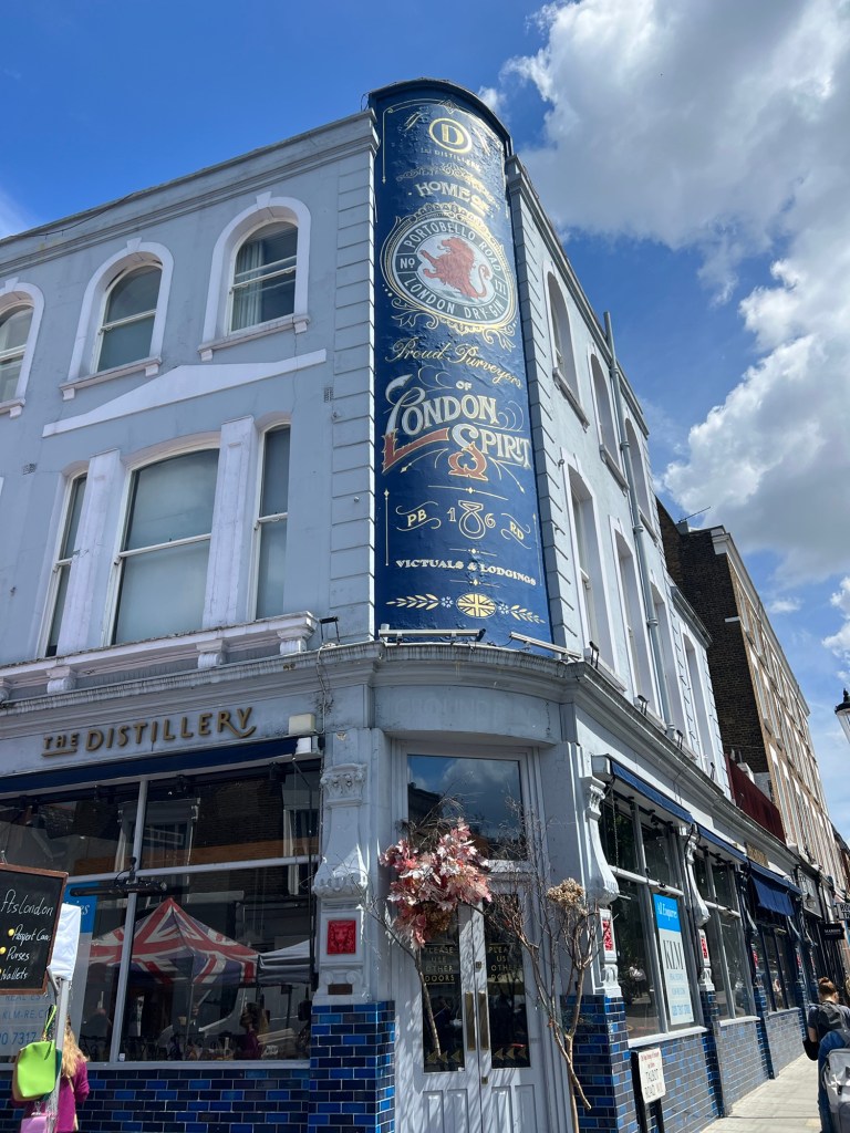 Många mysiga affärer -kaféer -barer och restauranger överallt. Promenerar längs Portobello Road – många turister men ändå härligt avslappnad atmosfär.