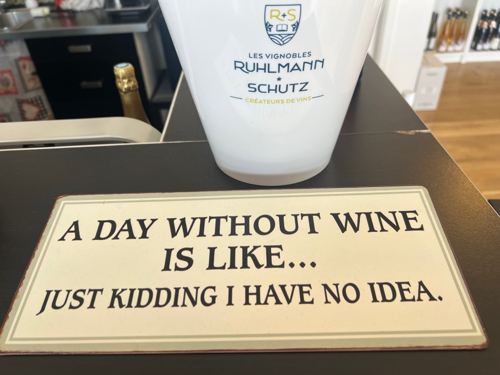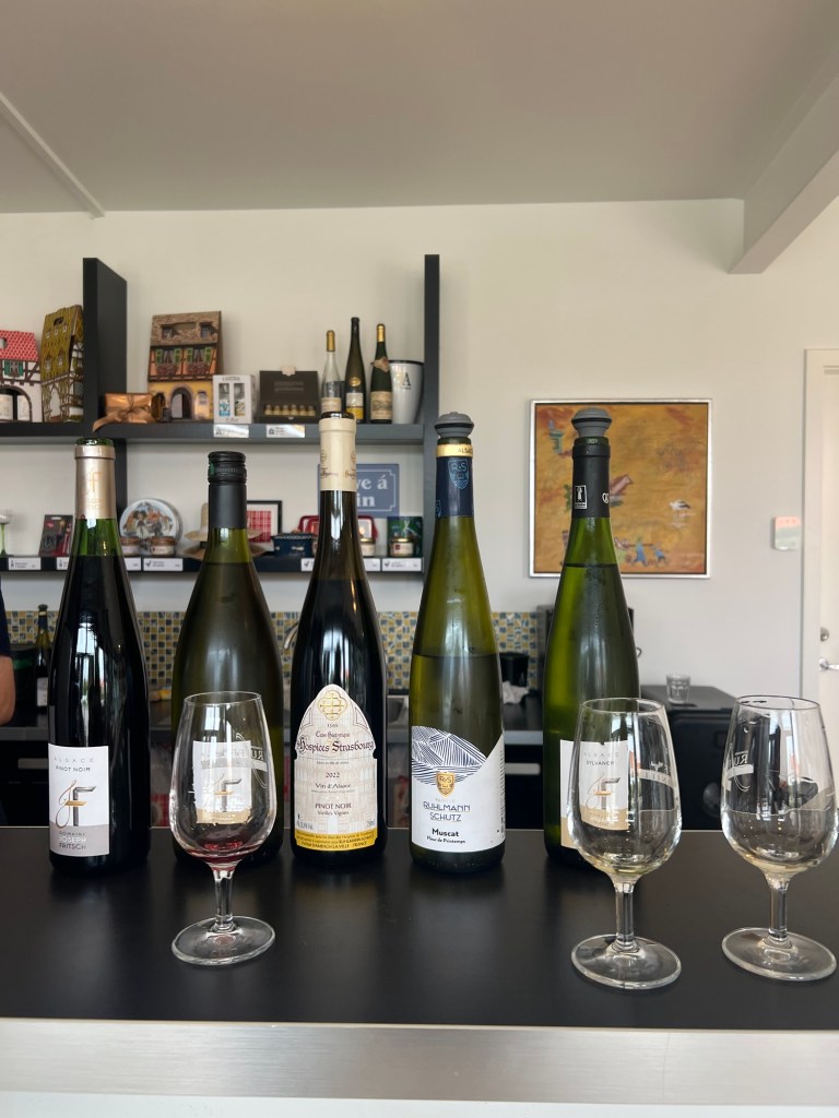 Där – säger jag – titta en vinbutik Petite Alsace med viner och även andra produkter från Alsace. Vilket fynd! Underbara viner – patéer och en mycket trevlig ägare. Vi får provsmaka utsökta viner och för en stund känns det som att vi är i Alsace.