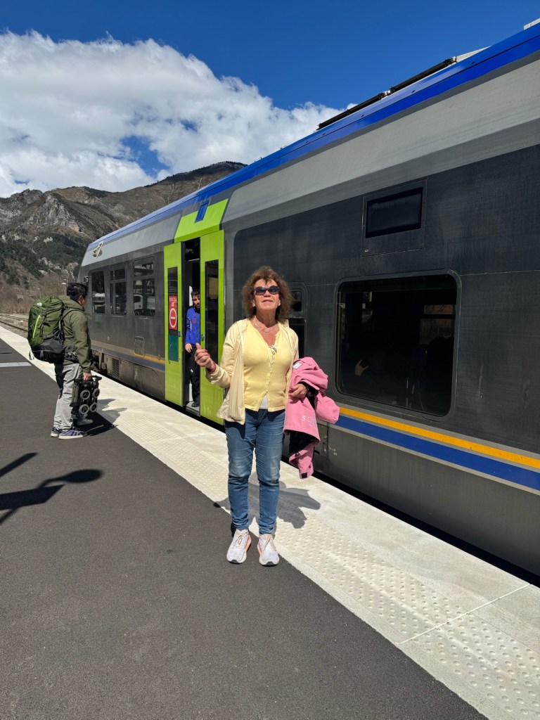 Efter skidåkning i soldränkta pister som man har nästan för sig själv – i alla fall off season tar vi tåget tillbaka till Tende – handlar ett gott franskt bröd på det lilla boulangeriet innan vi kör tillbaka och gör ett stopp i Arma di Taggia.