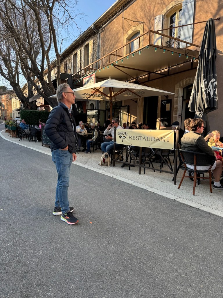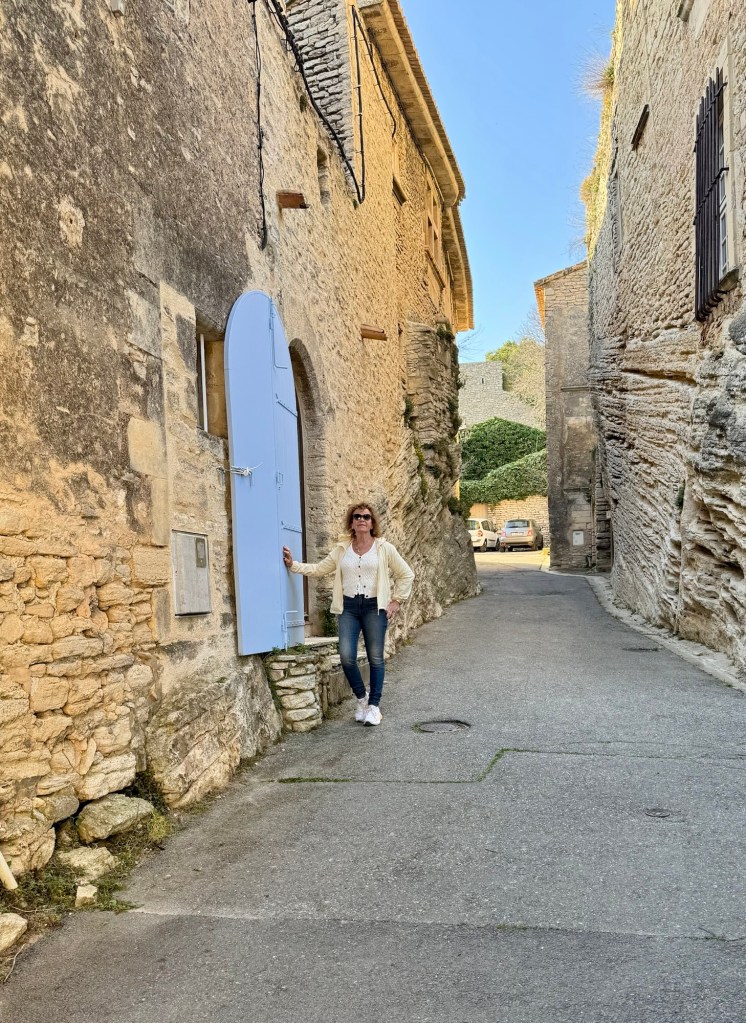 Det är behagligt väder – 22 grader och strålande sol när vi kör de 11 kilometerna till Goult – vacker som en saga. Små butiker med lokala varor- barer och kaféer- ett gammalt slott- en kvarn med spännande historia- allt så gammalt och ändå levande.