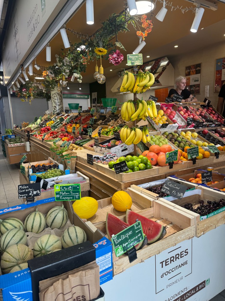 Just denna bilden är från Saluhallen i Montpellier men ett liknande utbud finns på minsta lilla bymarknad.