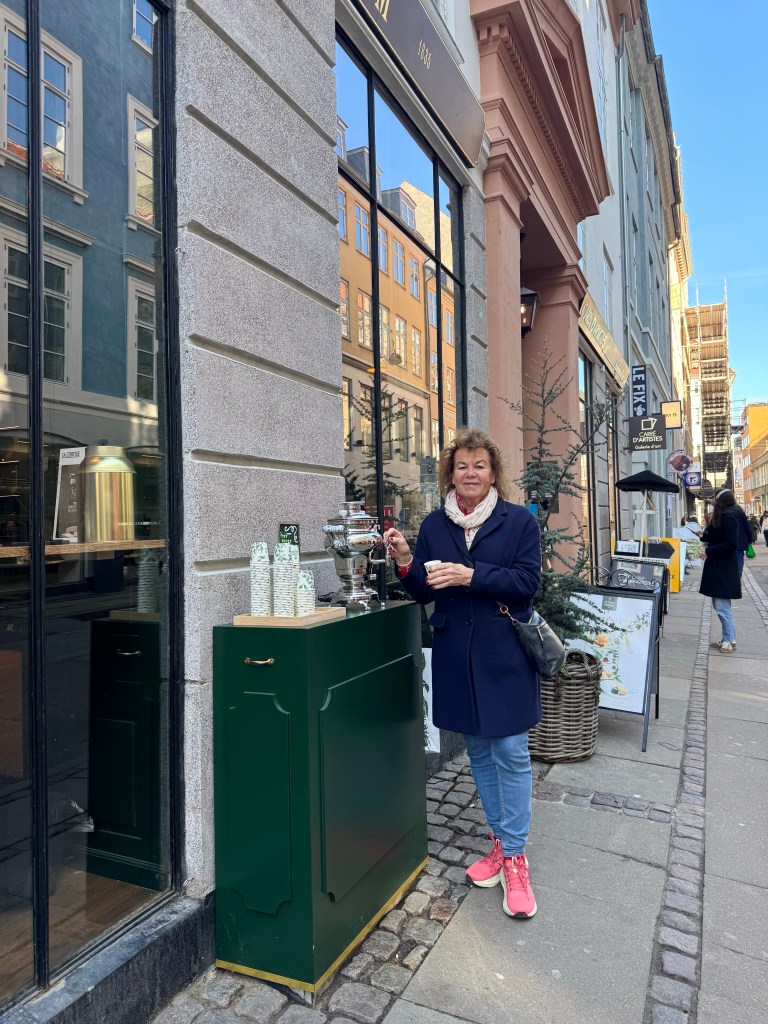 Efter en god frukost tar vi oss an Byen. Lite te utanför Perch’s Tehandel får komplettera frukostens kaffe. Gatorna bakom klassiska Ströget erbjuder en del spännande små butiker- fjärran från stora kedjor.
